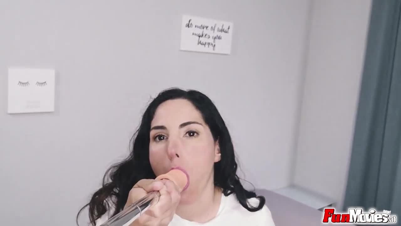 Amazing brunette babe MASTURBATES to ORGASM with dildo