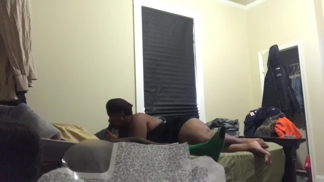 Hey, wanna see me suck my boyfriend's massive cock in a hotel bathroom while our friend sleeps?